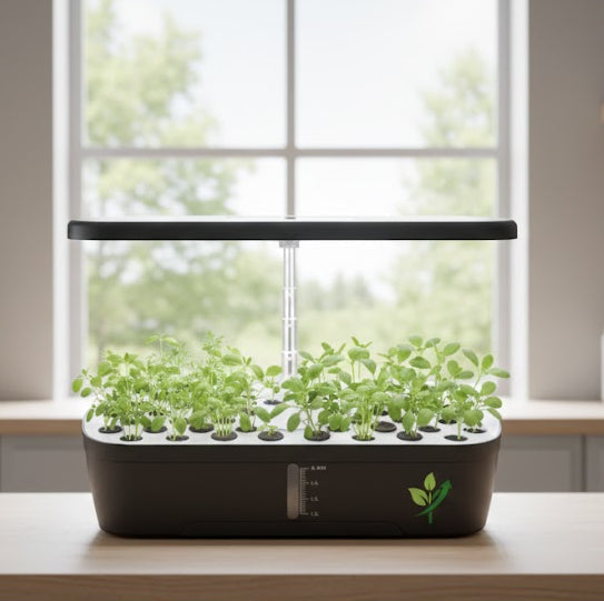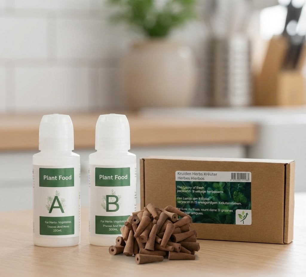 • Slim kweeksysteem: Het systeem voedt de kweekpluggen direct via water en de meegeleverde plantenvoeding, wat zorgt voor een snelle en gezonde groei.