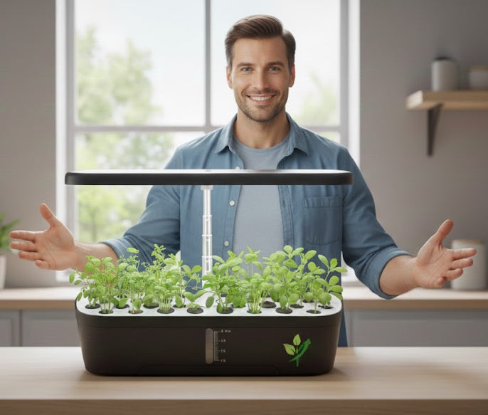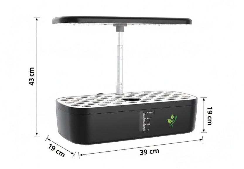 • Minimaal onderhoud: Vul het reservoir, voeg de plantenvoeding toe en plaats je zaden. Het enige onderhoud dat verricht moet worden is het water bijvullen.